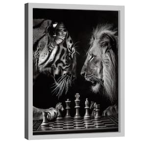 Quadro Decorativo Xadrez Felino Moldura Preta - 84x54cm -