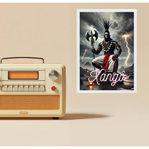Quadro decorativo xangô 33x24cm - com vidro Cor: moldura preta Informações do produto tire todas as suas dúvidas no descritivo abaixo: decoração para quarto, sala, cozinha, escritório, área gourmet e muito mais. Chega de paredes vazias medidas - cada peça tem 33x24cm a4 . Material do papel - papel fotográfico brilhante de altíssima resolução acabamento - todos os quadros são acompanhados de vidro para proteção da imagem. - moldura em madeira maciça na cor preta ou branca conforme produto escolhido e pendurador . - os quadros são embalados de forma segura com plástico bolha com camada dupla de acordo com o tamanho dos quadros. Garantia - garantia de 3 meses. Meu quadro chegou. Como posso fixá-lo Você precisa apenas de um martelo e um prego, pois os quadros já vão acompanhados de penduradores. Esta é a forma mais indicada. Como posso limpar meu quadro A limpeza é feita como um móvel comum da sua casa. Apenas um pano seco ou espanador são suficientes para tal