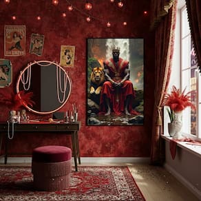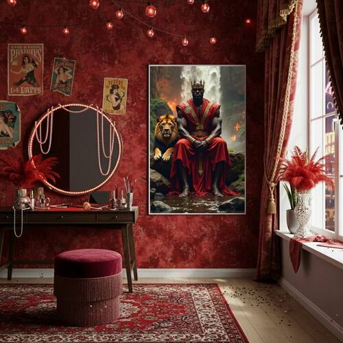 Quadro Decorativo Xangô Com Leão - 70x50cm - Cor: Moldura Preta