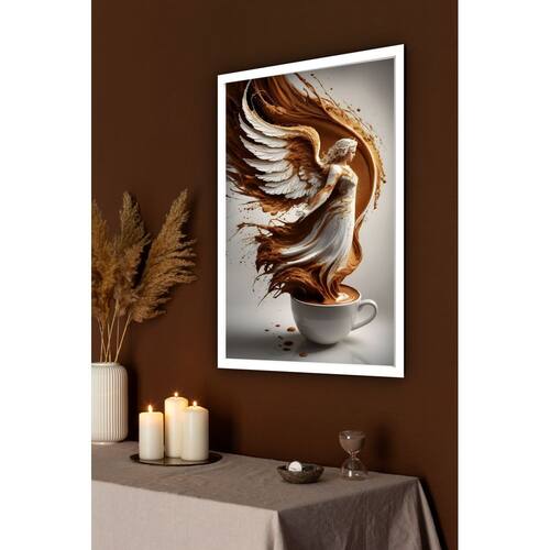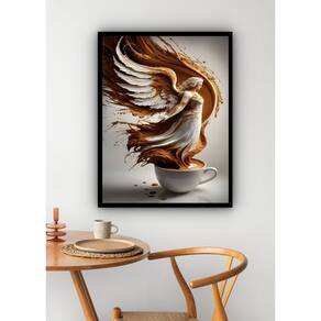 Quadro Decorativo Xícara Chocolate Anjo - 70x50cm - Cor: Moldura Preta