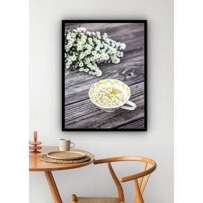 Quadro Decorativo Xícara De Chá Com Flores - 70x50cm - Cor: Moldura Branca