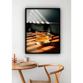 Quadro Decorativo Xícara De Chá Sol - 70x50cm - Cor: Moldura Branca