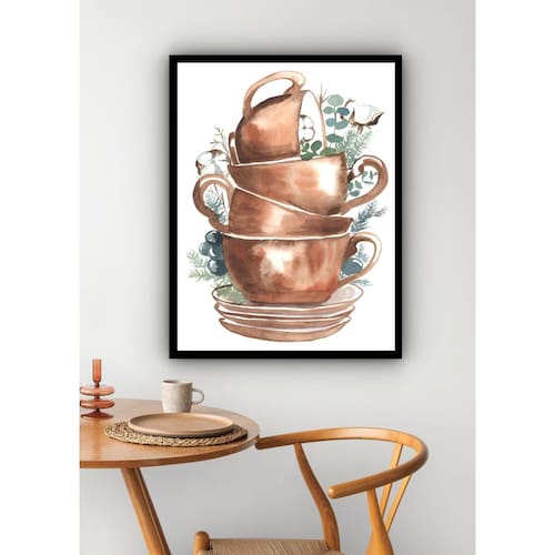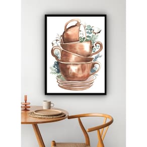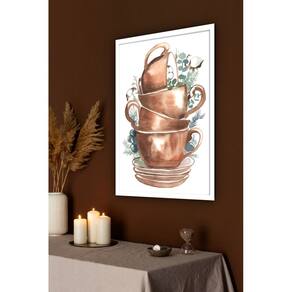 Quadro Decorativo Xícaras Empilhadas Cozinha - 70x50cm - Cor: Moldura Branca