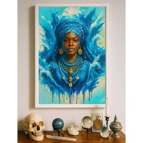 Quadro Decorativo Yemanjá Aquarela Azul 45x34cm - com vidro - Cor: Moldura preta