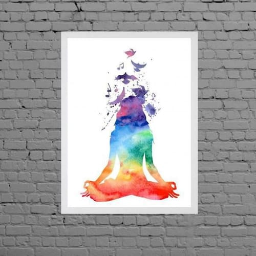 Quadro Decorativo Yoga Aquarela 33X24Cm Moldura Branca