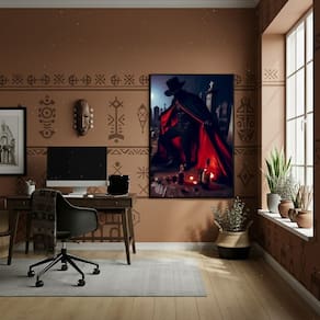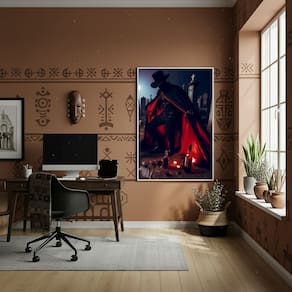 Quadro Decorativo Zé Pilintra em um Cemitério - 70x50cm - Cor: Moldura Branca