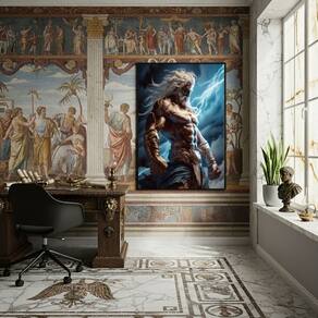 Quadro Decorativo Zeus O Poderoso Deus Grego - 70x50cm - Cor: Moldura Branca