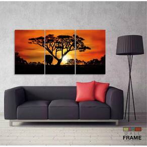 Quadro decorativos África Paisagens 3 peças 120x60 em tecido