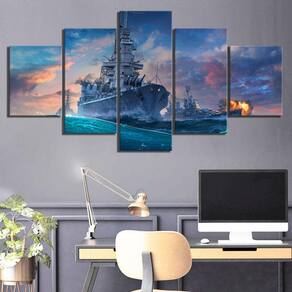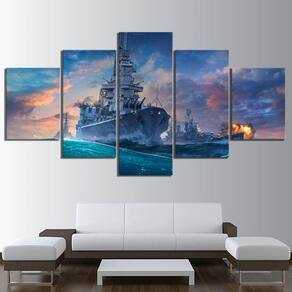 Quadro Decorativos Batalha Naval com 5 peças 130x65