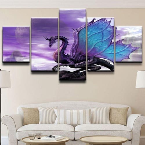 Quadro Decorativos Dragão com 5 peças 130x65 1