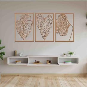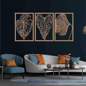 Tamanho total: 122cm comprimento x 60cm altura com espaçamento recomendado de 1 cm entre peças, Peças laterais: 60x40 cm peça central: 60x40 cm Espaçamento entre as peças: 1 cm A instalação é bem simples, não será preciso fazer sujeira furando a parede pois utilizamos o método bem prático para instalar, contém fita dupla face 3m no verso do quadro.