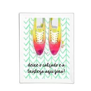 Quadro deixe o calçado e a tristeza pra fora 33x24cm Moldura: madeira branca Informações do produto tire todas as suas dúvidas no descritivo abaixo: decoração para quarto, sala, cozinha, escritório, área gourmet e muito mais. Chega de paredes vazias medidas - cada peça tem 33x24cm a4 . Material do papel - papel fotográfico brilhante de altíssima resolução acabamento - todos os quadros são acompanhados de uma película de acetato para proteção da imagem. - os quadros são embalados de forma segura com plástico bolha com camada dupla de acordo com o tamanho dos quadros. - de 3 meses. Meu quadro chegou. Como posso fixá-lo Você precisa apenas de um martelo e um prego, pois os quadros já vão acompanhados de penduradores. Esta é a forma mais indicada. Caso prefira, você pode utilizar uma fita dupla face neste caso, sugerimos de alta qualidade para evitar que descole e seu quadro caia . Como posso limpar meu quadro A limpeza é feita como um móvel comum da sua casa. Apenas um pano seco ou espanador são suficientes para tal Marca: Não Informado Ean: 7899046978533