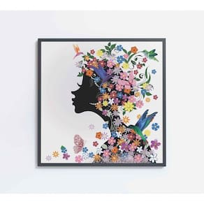 Quadro Decorativo Desenho Mulher Com Flores Medidas 40x40 Cm Tipo De Impressão Tecido Canvas