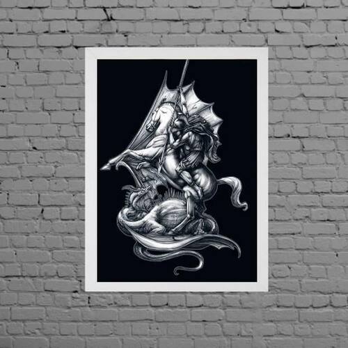 Quadro Desenho São Jorge Preto E Branco