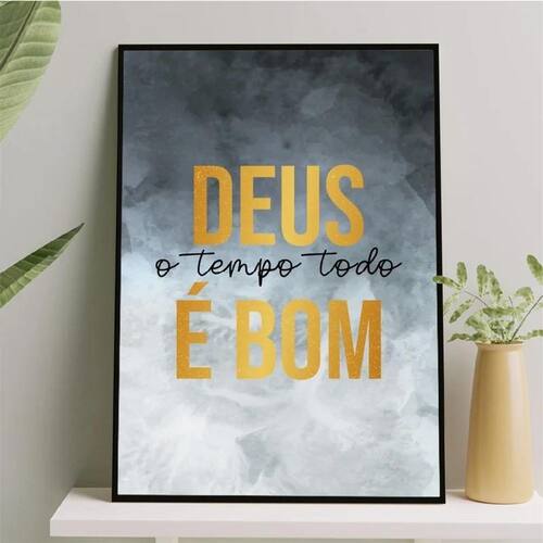 Quadro deus o tempo todo é bom 24x18cm Moldura: madeira preta Informações do produto Decoração para quarto, sala, cozinha, escritório, área gourmet e muito mais. Chega de paredes vazias medidas - cada peça tem 24x18cm a5 . Material do papel - papel fotográfico brilhante de altíssima resolução Acabamento - todos os quadros são acompanhados de uma película de acetato para proteção da imagem. - os quadros são embalados de forma segura com plástico bolha com camada dupla de acordo com o tamanho dos quadros. - de 3 meses. Meu quadro chegou. Como posso fixá-lo Você precisa apenas de um martelo e um prego, pois os quadros já vão acompanhados de penduradores. Esta é a forma mais indicada. Como posso limpar meu quadro A limpeza é feita como um móvel comum da sua casa. Apenas um pano seco ou espanador são suficientes para tal Marca: Não Informado