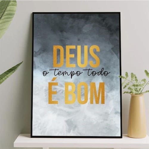 Quadro deus o tempo todo é bom 33x24cm Moldura: madeira branca Informações do produto Decoração para quarto, sala, cozinha, escritório, área gourmet e muito mais. Chega de paredes vazias Medidas - cada peça tem 33x24cm a4 . Material do papel - papel fotográfico brilhante de altíssima resolução Acabamento - todos os quadros são acompanhados de uma película de acetato para proteção da imagem. - os quadros são embalados de forma segura com plástico bolha com camada dupla de acordo com o tamanho dos quadros. Garantia - garantia de 3 meses. Meu quadro chegou. Como posso fixá-lo Você precisa apenas de um martelo e um prego, pois os quadros já vão acompanhados de penduradores. Esta é a forma mais indicada. Caso prefira, você pode utilizar uma fita dupla face neste caso, sugerimos de alta qualidade para evitar que descole e seu quadro caia . Como posso limpar meu quadro A limpeza é feita como um móvel comum da sua casa. Apenas um pano seco ou espanador são suficientes para tal