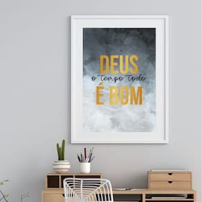 Quadro deus o tempo todo é bom - 60x48cm Moldura: madeira branca Informações do produto tire todas as suas dúvidas no descritivo abaixo: decoração para quarto, sala, cozinha, escritório, área gourmet e muito mais. Chega de paredes vazias medidas - cada peça tem 60x48cm . Material do papel - papel fotográfico brilhante de altíssima resolução acabamento - todos os quadros são acompanhados de vidro para proteção da imagem. - moldura em madeira maciça na cor preta ou branca conforme produto escolhido e pendurador. - paspatur branco com 7cm de largura - os quadros são embalados de forma segura com plástico bolha com camada dupla de acordo com o tamanho dos quadros. Garantia - garantia de 3 meses. Meu quadro chegou. Como posso fixá-lo Você precisa apenas de um martelo e um prego, pois os quadros já vão acompanhados de penduradores. Esta é a forma mais indicada. Como posso limpar meu quadro A limpeza é feita como um móvel comum da sua casa. Apenas um pano seco ou espanador são suficientes para tal Ean: 7896171502510