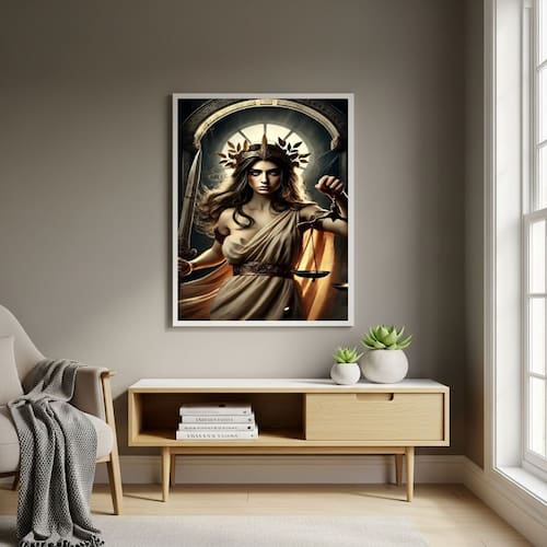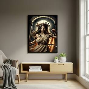 Quadro Deusa Grega Têmis - Símbolo de Justiça - 70x50cm - Cor: Moldura Preta