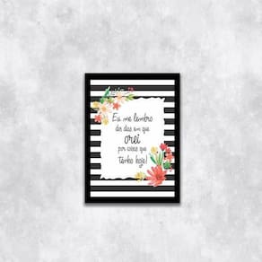 Quadro dias que orei por coisas que tenho 24x18cm Moldura: madeira preta Informações do produto tire todas as suas dúvidas no descritivo abaixo: decoração para quarto, sala, cozinha, escritório, área gourmet e muito mais. Chega de paredes vazias medidas - cada peça tem 24x18cm a5 . Material do papel - papel fotográfico brilhante de altíssima resolução acabamento - todos os quadros são acompanhados de uma película de acetato para proteção da imagem. - moldura em madeira maciça na cor branca e pendurador móvel que pode ser retirado facilmente caso deseje fixar com fita dupla face. - os quadros são embalados de forma segura com plástico bolha com camada dupla de acordo com o tamanho dos quadros. - de 3 meses prazo de envio pedimos 24 horas úteis no máximo para enviar seu pedido após o envio, segue os prazos normais dos correios, cerca de 7 exceto para norte e nordeste, que pode ser de até 14 . Em diversas cidades, este prazo normalmente é reduzido, mas depende do prazo dos correios. Meu quadro chegou. Como posso fixá-lo Você precisa apenas de um martelo e um prego, pois os quadros já vão acompanhados de penduradores. Esta é a forma mais indicada. Caso prefira, você pode utilizar uma fita dupla face neste caso, sugerimos de alta qualidade para evitar que descole e seu quadro caia . Como posso limpar meu quadro A limpeza é feita como um móvel comum da sua casa. Apenas um pano seco ou espanador são suficientes para tal