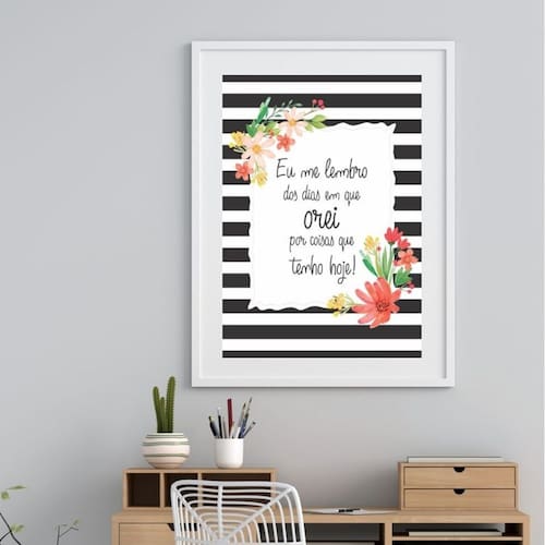 Quadro Dias Que Orei Por Coisas Que Tenho - 60x48cm - Moldura: Madeira preta