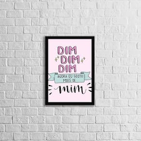 Quadro dim dim dim agora eu gosto mais de mim 24x18cm Moldura: madeira preta Informações do produto tire todas as suas dúvidas no descritivo abaixo: decoração para quarto, sala, cozinha, escritório, área gourmet e muito mais. Chega de paredes vazias medidas - cada peça tem 24x18cm a5 . Material do papel - papel fotográfico brilhante de altíssima resolução acabamento - todos os quadros são acompanhados de uma película de acetato para proteção da imagem. - moldura em madeira maciça na cor branca e pendurador móvel que pode ser retirado facilmente caso deseje fixar com fita dupla face. - os quadros são embalados de forma segura com plástico bolha com camada dupla de acordo com o tamanho dos quadros. - de 3 meses prazo de envio pedimos 24 horas úteis no máximo para enviar seu pedido após o envio, segue os prazos normais dos correios, cerca de 7 exceto para norte e nordeste, que pode ser de até 14 . Em diversas cidades, este prazo normalmente é reduzido, mas depende do prazo dos correios. Meu quadro chegou. Como posso fixá-lo Você precisa apenas de um martelo e um prego, pois os quadros já vão acompanhados de penduradores. Esta é a forma mais indicada. Caso prefira, você pode utilizar uma fita dupla face neste caso, sugerimos de alta qualidade para evitar que descole e seu quadro caia . Como posso limpar meu quadro A limpeza é feita como um móvel comum da sua casa. Apenas um pano seco ou espanador são suficientes para tal Marca: Não Informado Ean: 7892091051800