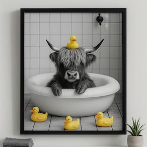 Quadro Divertido Banheiro Boi Com Patinhos 33x24cm - Cor: Moldura branca