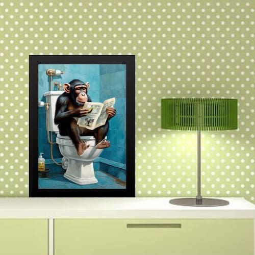 Quadro divertido banheiro chipanzé com jornal 24x18cm Cor: moldura branca Informações do produto tire todas as suas dúvidas no descritivo abaixo: decoração para quarto, sala, cozinha, escritório, área gourmet e muito mais. Chega de paredes vazias medidas - cada peça tem 24x18cm a5 . Material do papel - papel fotográfico brilhante de altíssima resolução acabamento - todos os quadros são acompanhados de uma película de acetato para proteção da imagem. - os quadros são embalados de forma segura com plástico bolha com camada dupla de acordo com o tamanho dos quadros. - de 3 meses. Meu quadro chegou. Como posso fixá-lo Você precisa apenas de um martelo e um prego, pois os quadros já vão acompanhados de penduradores. Esta é a forma mais indicada. Caso prefira, você pode utilizar uma fita dupla face neste caso, sugerimos de alta qualidade para evitar que descole e seu quadro caia . Como posso limpar meu quadro A limpeza é feita como um móvel comum da sua casa. Apenas um pano seco ou espanador são suficientes para tal