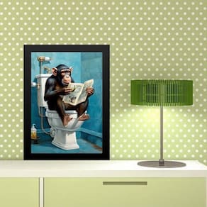 Quadro divertido banheiro chipanzé com jornal 24x18cm Cor: moldura preta Informações do produto tire todas as suas dúvidas no descritivo abaixo: decoração para quarto, sala, cozinha, escritório, área gourmet e muito mais. Chega de paredes vazias medidas - cada peça tem 24x18cm a5 . Material do papel - papel fotográfico brilhante de altíssima resolução acabamento - todos os quadros são acompanhados de uma película de acetato para proteção da imagem. - os quadros são embalados de forma segura com plástico bolha com camada dupla de acordo com o tamanho dos quadros. - de 3 meses. Meu quadro chegou. Como posso fixá-lo Você precisa apenas de um martelo e um prego, pois os quadros já vão acompanhados de penduradores. Esta é a forma mais indicada. Caso prefira, você pode utilizar uma fita dupla face neste caso, sugerimos de alta qualidade para evitar que descole e seu quadro caia . Como posso limpar meu quadro A limpeza é feita como um móvel comum da sua casa. Apenas um pano seco ou espanador são suficientes para tal