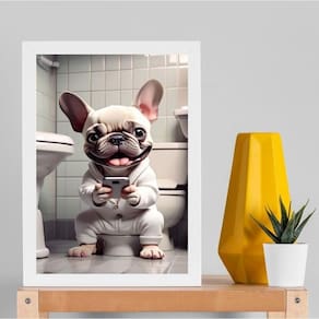 Quadro divertido banheiro - filhote bulldog 45x34cm - com vidro Cor: moldura branca Informações do produto tire todas as suas dúvidas no descritivo abaixo: decoração para quarto, sala, cozinha, escritório, área gourmet e muito mais. Chega de paredes vazias medidas - cada peça tem 45x34cm a3 . Material do papel - papel fotográfico brilhante de altíssima resolução acabamento - todos os quadros são acompanhados de vidro para proteção da imagem. - moldura em madeira maciça na cor preta ou branca conforme produto escolhido e pendurador . - os quadros são embalados de forma segura com plástico bolha com camada dupla de acordo com o tamanho dos quadros. Garantia - garantia de 3 meses. Meu quadro chegou. Como posso fixá-lo Você precisa apenas de um martelo e um prego, pois os quadros já vão acompanhados de penduradores. Esta é a forma mais indicada. Como posso limpar meu quadro A limpeza é feita como um móvel comum da sua casa. Apenas um pano seco ou espanador são suficientes para tal