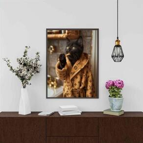 Quadro divertido banheiro gato rico 24x18cm - com vidro Cor: moldura branca Informações do produto tire todas as suas dúvidas no descritivo abaixo: decoração para quarto, sala, cozinha, escritório, área gourmet e muito mais. Chega de paredes vazias medidas - cada peça tem 24x18cm a5 . Material do papel - papel fotográfico brilhante de altíssima resolução acabamento - todos os quadros são acompanhados de vidro para proteção da imagem. - moldura em madeira maciça na cor preta ou branca conforme produto escolhido e pendurador . - os quadros são embalados de forma segura com plástico bolha com camada dupla de acordo com o tamanho dos quadros. Garantia - garantia de 3 meses. Meu quadro chegou. Como posso fixá-lo Você precisa apenas de um martelo e um prego, pois os quadros já vão acompanhados de penduradores. Esta é a forma mais indicada. Como posso limpar meu quadro A limpeza é feita como um móvel comum da sua casa. Apenas um pano seco ou espanador são suficientes para tal