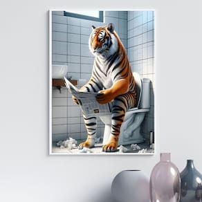 Quadro divertido banheiro - tigre 45x34cm Cor: moldura branca Informações do produto tire todas as suas dúvidas no descritivo abaixo: decoração para quarto, sala, cozinha, escritório, área gourmet e muito mais. Chega de paredes vazias. Medidas - cada peça tem 45x34cm a3 . Material do papel - papel fotográfico brilhante de altíssima resolução acabamento - todos os quadros são acompanhados de uma película de acetato para proteção da imagem. - os quadros são embalados de forma segura com plástico bolha com camada dupla de acordo com o tamanho dos quadros. Garantia - garantia de 3 meses. Meu quadro chegou. Como posso fixá-lo Você precisa apenas de um martelo e um prego, pois os quadros já vão acompanhados de penduradores. Esta é a forma mais indicada. Caso prefira, você pode utilizar uma fita dupla face neste caso, sugerimos de alta qualidade para evitar que descole e seu quadro caia . Como posso limpar meu quadro A limpeza é feita como um móvel comum da sua casa. Apenas um pano seco ou espanador são suficientes para tal