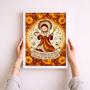 Quadro Divertido Café Nsa Sra Cafeína 45x34cm Mold Branca Vidro