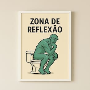 Quadro Divertido De Banheiro - Zona De Reflexão 24x18cm - com vidro - Cor: Moldura branca