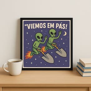 Quadro Divertido Extraterrestres - 33x33cm - com vidro - Cor: Moldura Branca