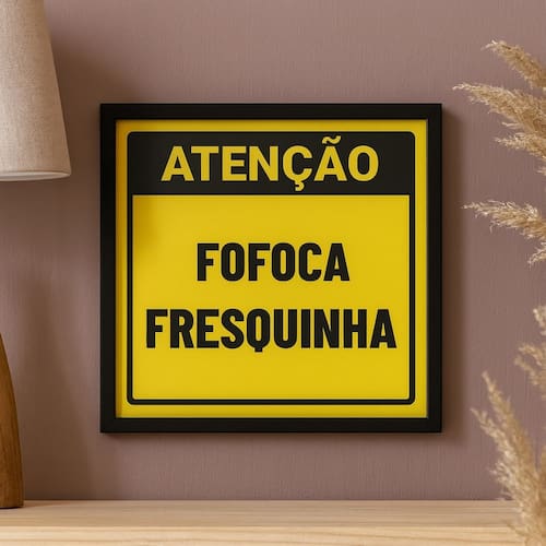 Quadro Divertido Fofoca Fresquinha- 33x33cm - com vidro - Cor: Moldura Preta