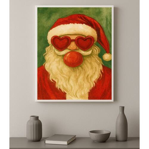 Quadro Divertido Papai Noel Bubble Gun 45x34cm - com vidro - Cor: Moldura branca