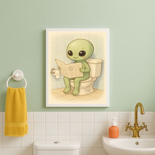 Quadro Divertido Para Banheiro Extraterrestre Baby 24x18cm - Cor: Moldura branca
