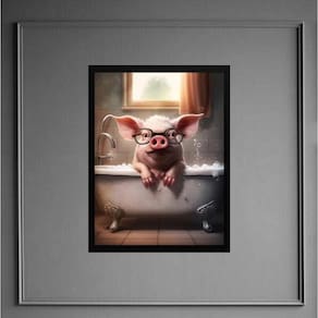 Quadro divertido para banheiro - porquinho 24x18cm Moldura: madeira preta Informações do produto tire todas as suas dúvidas no descritivo abaixo: decoração para quarto, sala, cozinha, escritório, área gourmet e muito mais. Chega de paredes vazias medidas - cada peça tem 24x18cm a5 . Material do papel - papel fotográfico brilhante de altíssima resolução acabamento - todos os quadros são acompanhados de uma película de acetato para proteção da imagem. - os quadros são embalados de forma segura com plástico bolha com camada dupla de acordo com o tamanho dos quadros. Garantia - garantia de 3 meses. Meu quadro chegou. Como posso fixá-lo Você precisa apenas de um martelo e um prego, pois os quadros já vão acompanhados de penduradores. Esta é a forma mais indicada. Caso prefira, você pode utilizar uma fita dupla face neste caso, sugerimos de alta qualidade para evitar que descole e seu quadro caia . Como posso limpar meu quadro A limpeza é feita como um móvel comum da sua casa. Apenas um pano seco ou espanador são suficientes para tal