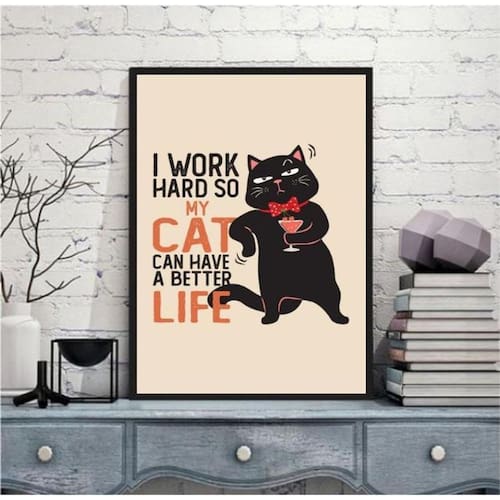 Quadro divertido trabalho para o meu gato 24x18cm Cor: moldura branca Informações do produto tire todas as suas dúvidas no descritivo abaixo: decoração para quarto, sala, cozinha, escritório, área gourmet e muito mais. Chega de paredes vazias medidas - cada peça tem 24x18cm a5 . Material do papel - papel fotográfico brilhante de altíssima resolução acabamento - todos os quadros são acompanhados de uma película de acetato para proteção da imagem. - os quadros são embalados de forma segura com plástico bolha com camada dupla de acordo com o tamanho dos quadros. - de 3 meses. Meu quadro chegou. Como posso fixá-lo Você precisa apenas de um martelo e um prego, pois os quadros já vão acompanhados de penduradores. Esta é a forma mais indicada. Caso prefira, você pode utilizar uma fita dupla face neste caso, sugerimos de alta qualidade para evitar que descole e seu quadro caia . Como posso limpar meu quadro A limpeza é feita como um móvel comum da sua casa. Apenas um pano seco ou espanador são suficientes para tal Marca: Não Informado