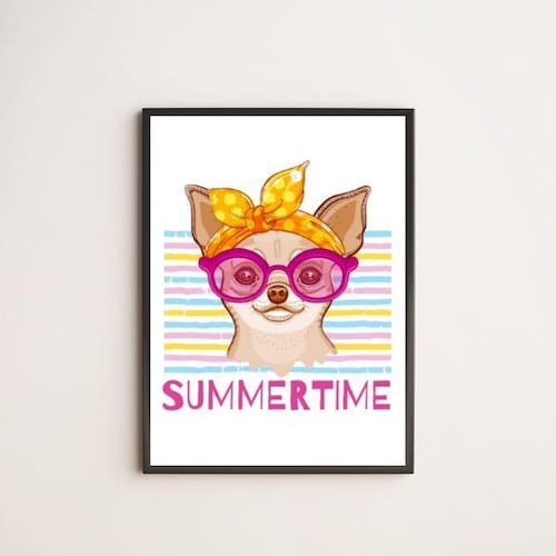 Quadro dog summer time 33x24cm - com vidro Moldura: madeira preta Informações do produto tire todas as suas dúvidas no descritivo abaixo: decoração para quarto, sala, cozinha, escritório, área gourmet e muito mais. Chega de paredes vazias medidas - cada peça tem 33x24cm a4 . Material do papel - papel fotográfico brilhante de altíssima resolução acabamento - todos os quadros são acompanhados de vidro para proteção da imagem. - moldura em madeira maciça na cor preta e pendurador . - os quadros são embalados de forma segura com plástico bolha com camada dupla de acordo com o tamanho dos quadros. - de 3 meses. Meu quadro chegou. Como posso fixá-lo Você precisa apenas de um martelo e um prego, pois os quadros já vão acompanhados de penduradores. Esta é a forma mais indicada. Como posso limpar meu quadro A limpeza é feita como um móvel comum da sua casa. Apenas um pano seco ou espanador são suficientes para tal Marca: Não Informado
