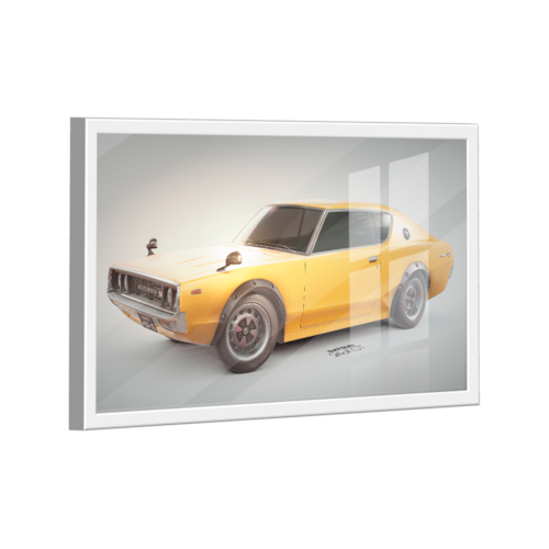 Quadro Dustin 240k GT Amarelo -- BR ARTES Moldura Branca e Vidro - Médio 84x54 -