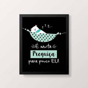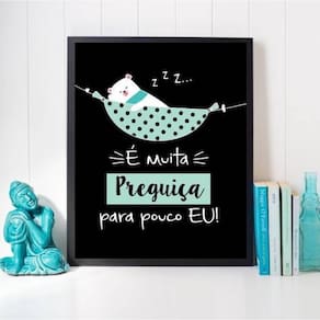 Quadro é muita preguiça para pouco eu 24x18cm Moldura: madeira preta Informações do produto tire todas as suas dúvidas no descritivo abaixo: decoração para quarto, sala, cozinha, escritório, área gourmet e muito mais. Chega de paredes vazias medidas - cada peça tem 24x18cm a5 . Material do papel - papel fotográfico brilhante de altíssima resolução acabamento - todos os quadros são acompanhados de uma película de acetato para proteção da imagem. - moldura em madeira maciça na cor branca e pendurador móvel que pode ser retirado facilmente caso deseje fixar com fita dupla face. - os quadros são embalados de forma segura com plástico bolha com camada dupla de acordo com o tamanho dos quadros. - de 3 meses prazo de envio pedimos 24 horas úteis no máximo para enviar seu pedido após o envio, segue os prazos normais dos correios, cerca de 7 exceto para norte e nordeste, que pode ser de até 14 . Em diversas cidades, este prazo normalmente é reduzido, mas depende do prazo dos correios. Meu quadro chegou. Como posso fixá-lo Você precisa apenas de um martelo e um prego, pois os quadros já vão acompanhados de penduradores. Esta é a forma mais indicada. Caso prefira, você pode utilizar uma fita dupla face neste caso, sugerimos de alta qualidade para evitar que descole e seu quadro caia . Como posso limpar meu quadro A limpeza é feita como um móvel comum da sua casa. Apenas um pano seco ou espanador são suficientes para tal Marca: Não Informado