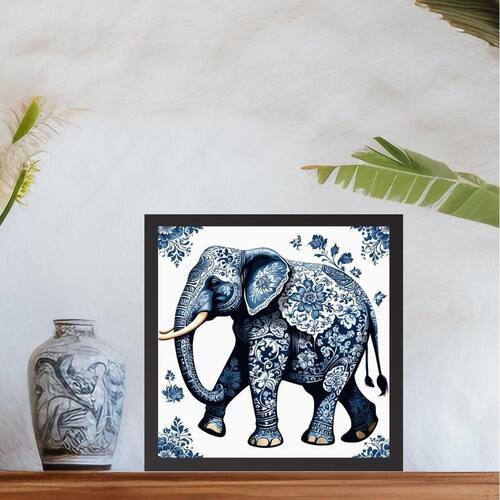 Quadro elefante estilo azulejo português - 33x33cm - com vidro Cor: moldura branca Informações do produto tire todas as suas dúvidas no descritivo abaixo: decoração para quarto, sala, cozinha, escritório, área gourmet e muito mais. Chega de paredes vazias medidas - cada peça tem 33x33cm. Material do papel - papel fotográfico brilhante de altíssima resolução acabamento - todos os quadros são acompanhados de vidro para proteção da imagem. - moldura em madeira maciça na cor preta ou branca conforme produto escolhido e pendurador . - os quadros são embalados de forma segura com plástico bolha com camada dupla de acordo com o tamanho dos quadros. - de 3 meses. Meu quadro chegou. Como posso fixá-lo Você precisa apenas de um martelo e um prego, pois os quadros já vão acompanhados de penduradores. Esta é a forma mais indicada. Como posso limpar meu quadro A limpeza é feita como um móvel comum da sua casa. Apenas um pano seco ou espanador são suficientes para tal