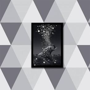 Quadro elefante com estrelas 33x24cm - com vidro Moldura: madeira preta Informações do produto tire todas as suas dúvidas no descritivo abaixo: decoração para quarto, sala, cozinha, escritório, área gourmet e muito mais. Chega de paredes vazias medidas - cada peça tem 33x24cm a4 . Material do papel - papel fotográfico brilhante de altíssima resolução acabamento - todos os quadros são acompanhados de vidro para proteção da imagem. - moldura em madeira maciça na cor preta e pendurador . - os quadros são embalados de forma segura com plástico bolha com camada dupla de acordo com o tamanho dos quadros. - de 3 meses. Meu quadro chegou. Como posso fixá-lo Você precisa apenas de um martelo e um prego, pois os quadros já vão acompanhados de penduradores. Esta é a forma mais indicada. Como posso limpar meu quadro A limpeza é feita como um móvel comum da sua casa. Apenas um pano seco ou espanador são suficientes para tal
