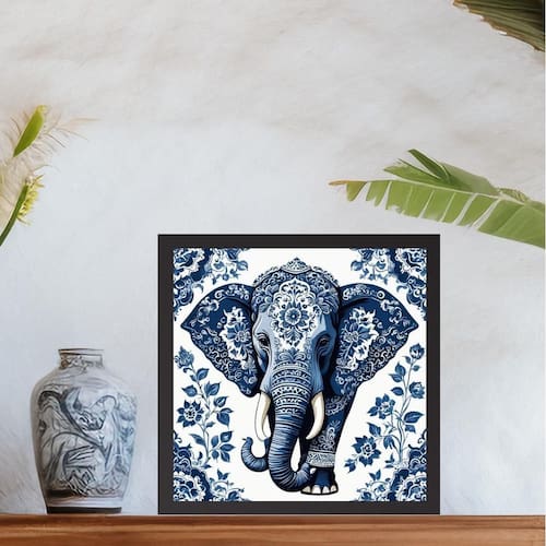 Quadro elefante floral estilo azulejo português - 33x33cm - com vidro Cor: moldura preta Informações do produto tire todas as suas dúvidas no descritivo abaixo: decoração para quarto, sala, cozinha, escritório, área gourmet e muito mais. Chega de paredes vazias medidas - cada peça tem 33x33cm. Material do papel - papel fotográfico brilhante de altíssima resolução acabamento - todos os quadros são acompanhados de vidro para proteção da imagem. - moldura em madeira maciça na cor preta ou branca conforme produto escolhido e pendurador . - os quadros são embalados de forma segura com plástico bolha com camada dupla de acordo com o tamanho dos quadros. - de 3 meses. Meu quadro chegou. Como posso fixá-lo Você precisa apenas de um martelo e um prego, pois os quadros já vão acompanhados de penduradores. Esta é a forma mais indicada. Como posso limpar meu quadro A limpeza é feita como um móvel comum da sua casa. Apenas um pano seco ou espanador são suficientes para tal Marca: Não Informado