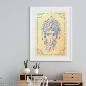 Quadro elefante indiano ganesha - 60x48cm Moldura: madeira preta Informações do produto tire todas as suas dúvidas no descritivo abaixo: decoração para quarto, sala, cozinha, escritório, área gourmet e muito mais. Chega de paredes vazias medidas - cada peça tem 60x48cm . Material do papel - papel fotográfico brilhante de altíssima resolução acabamento - todos os quadros são acompanhados de vidro para proteção da imagem. - moldura em madeira maciça na cor preta ou branca conforme produto escolhido e pendurador. - paspatur branco com 7cm de largura - os quadros são embalados de forma segura com plástico bolha com camada dupla de acordo com o tamanho dos quadros. Garantia - garantia de 3 meses. Meu quadro chegou. Como posso fixá-lo Você precisa apenas de um martelo e um prego, pois os quadros já vão acompanhados de penduradores. Esta é a forma mais indicada. Como posso limpar meu quadro A limpeza é feita como um móvel comum da sua casa. Apenas um pano seco ou espanador são suficientes para tal Ean: 7897601882011