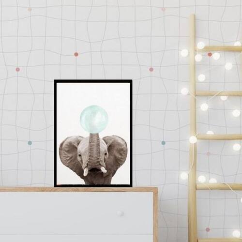 Quadro elefantinho chiclete azul 45x34cm - com vidro