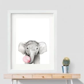 Quadro elefantinho chiclete rosa- 60x48cm Moldura: madeira preta Informações do produto tire todas as suas dúvidas no descritivo abaixo: decoração para quarto, sala, cozinha, escritório, área gourmet e muito mais. Chega de paredes vazias medidas - cada peça tem 60x48cm . Material do papel - papel fotográfico brilhante de altíssima resolução acabamento - todos os quadros são acompanhados de vidro para proteção da imagem. - moldura em madeira maciça na cor preta ou branca conforme produto escolhido e pendurador. - paspatur branco com 7cm de largura - os quadros são embalados de forma segura com plástico bolha com camada dupla de acordo com o tamanho dos quadros. - de 3 meses. Meu quadro chegou. Como posso fixá-lo Você precisa apenas de um martelo e um prego, pois os quadros já vão acompanhados de penduradores. Esta é a forma mais indicada. Como posso limpar meu quadro A limpeza é feita como um móvel comum da sua casa. Apenas um pano seco ou espanador são suficientes para tal Marca: Não Informado