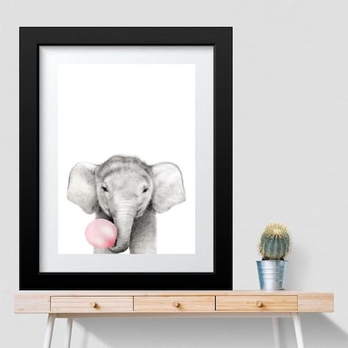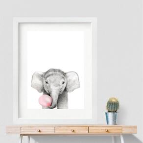 Quadro elefantinho chiclete rosa- 60x48cm Moldura: madeira branca Informações do produto tire todas as suas dúvidas no descritivo abaixo: decoração para quarto, sala, cozinha, escritório, área gourmet e muito mais. Chega de paredes vazias medidas - cada peça tem 60x48cm . Material do papel - papel fotográfico brilhante de altíssima resolução acabamento - todos os quadros são acompanhados de vidro para proteção da imagem. - moldura em madeira maciça na cor preta ou branca conforme produto escolhido e pendurador. - paspatur branco com 7cm de largura - os quadros são embalados de forma segura com plástico bolha com camada dupla de acordo com o tamanho dos quadros. - de 3 meses. Meu quadro chegou. Como posso fixá-lo Você precisa apenas de um martelo e um prego, pois os quadros já vão acompanhados de penduradores. Esta é a forma mais indicada. Como posso limpar meu quadro A limpeza é feita como um móvel comum da sua casa. Apenas um pano seco ou espanador são suficientes para tal Marca: Não Informado