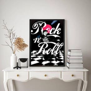 Especificações técnicas: - Título: Quadro Decorativo Elvis Rockn Roll 33X24Cm - Com Vidro - Medidas: 33x24cm A4 - Material da moldura: Madeira preta - Material do papel: Papel fotográfico brilhante de altíssima resolução - Acabamento: Acompanhado de vidro para proteção da imagem - Fixação: Penduradores já inclusos - Limpeza: Utilizar pano seco ou espanador